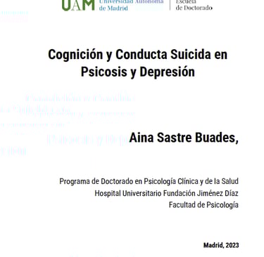 COGNICIÓN Y CONDUCTA SUICIDA EN PSICOSIS Y DEPRESIÓN. Aina Sastre Buades,